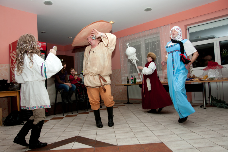 Po návratu do salonku za námi zavítala vzácná návštěva. Sám děd Mrazík s Nastěnkou, Ivánkem a dědečkem Hříbečkem. Pro všechny byla návštěva velikánským překvapením a krásným zpestřením večera. Pak už následovala zábava při zimních a vánočních písničkách, které pro nás připravili manželé Uhrovi. Vánoční úklid a pečení cukroví šly letos u Uhrů kvůli výběru hudby a tanců stranou.... ale Ježíšek se taky narodil v chlívě....